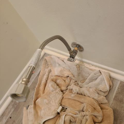 Performed physical leak detection by cutting drywall to find leaking steamer. Capped off supply line. Bow tie plumbing not responsible for drywall repairs. 1 year warranty on workmanship.