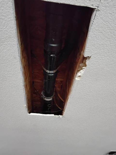 I carefully cut drywall to access the drain line beneath the kitchen cabinets. I tested the area with running water and confirmed it was clear. I also cut drywall in the laundry room near the clean-out, ensuring everything was fine.