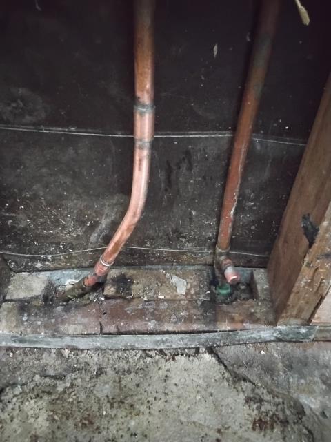 Gas Leak: 3/4 inch gas line in crawlspace leaking, replaced pipe with new 3/4 inch csst pipe. Connected to iron pipe ball valve at meter, secured new pipe in crawlspace with pipe straps and reconnected to iron pipe tee supplying both furnaces. Pressure tested new gas line with air, no leaks. Pressurized line with gas and double checked all joints made, no leaks. 1 year warranty on workmanship.